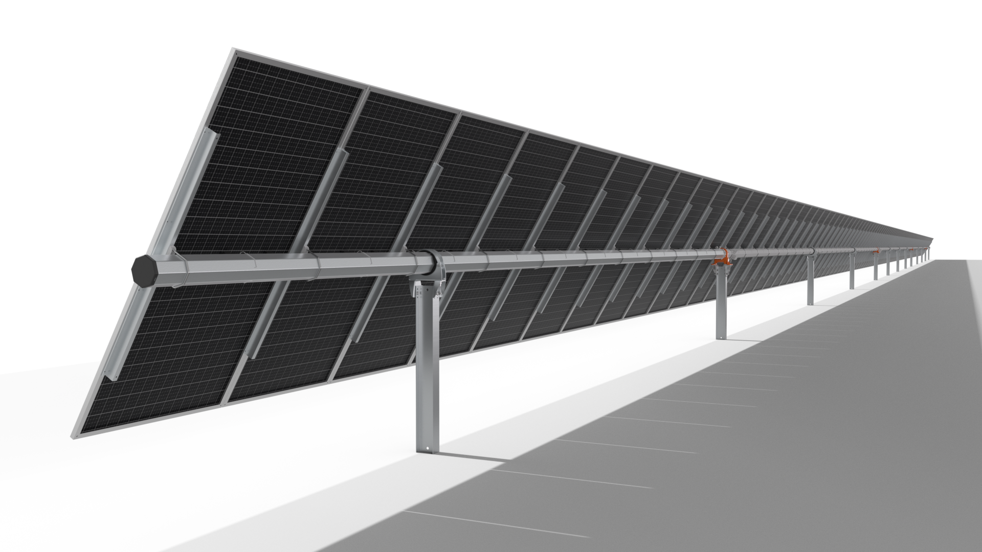接纳八角管结构,融合方管抗弯与圆管抗扭特性,装置效率提升 50% ;搭配八角管 + 檩条抬高计划,优化双面组件发电效能。